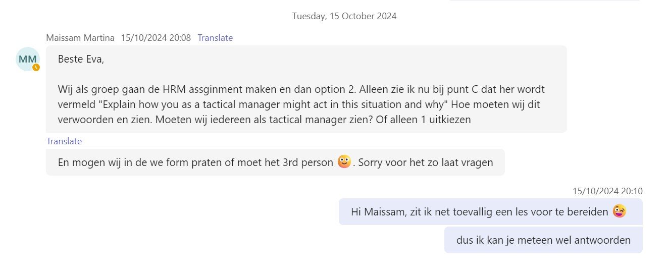 Als HR-adviseur was ik, als het ging om beoordelingen, altijd aan het sparren met mijn collega’s. Deze vorm van kalibratie heb ik het afgelopen jaar soms toch gemist en moet ik dus zelf meer opzoeken. Niet alleen op kleine momenten, maar ook door ze actief te organiseren, bijvoorbeeld binnen onze vakgroep. Hier ga ik in het nieuwe semester mee aan de slag.