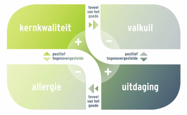 Een andere valkuil is mijn geduld. Hoewel dit vaak een kracht is, kan te veel geduld er toe leiden dat de ander zich niet aangemoedigd voelt om actie te ondernemen of keuzes te maken, terwijl dat juist heel erg helpend kan zijn en nodig is om vooruitgang te boeken. Daarom is het mijn uitdaging om mijn geduld eerst in te zetten als basis voor vertrouwen, maar vervolgens bewust te schakelen en te kijken hoe ik de ander kan stimuleren om de volgende stap te nemen. Dat kan al door subtiele aanmoedigingen en dat past beter mij mij dan het aannemen van een hele directieve houding.